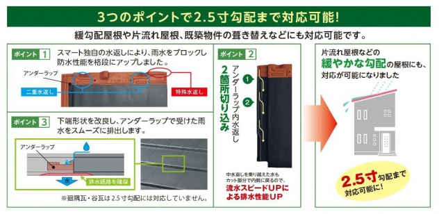屋根面と一体となる直線的なデザインと、フラットで洗練された形状が、高級感のあるスマートな屋根を演出します。